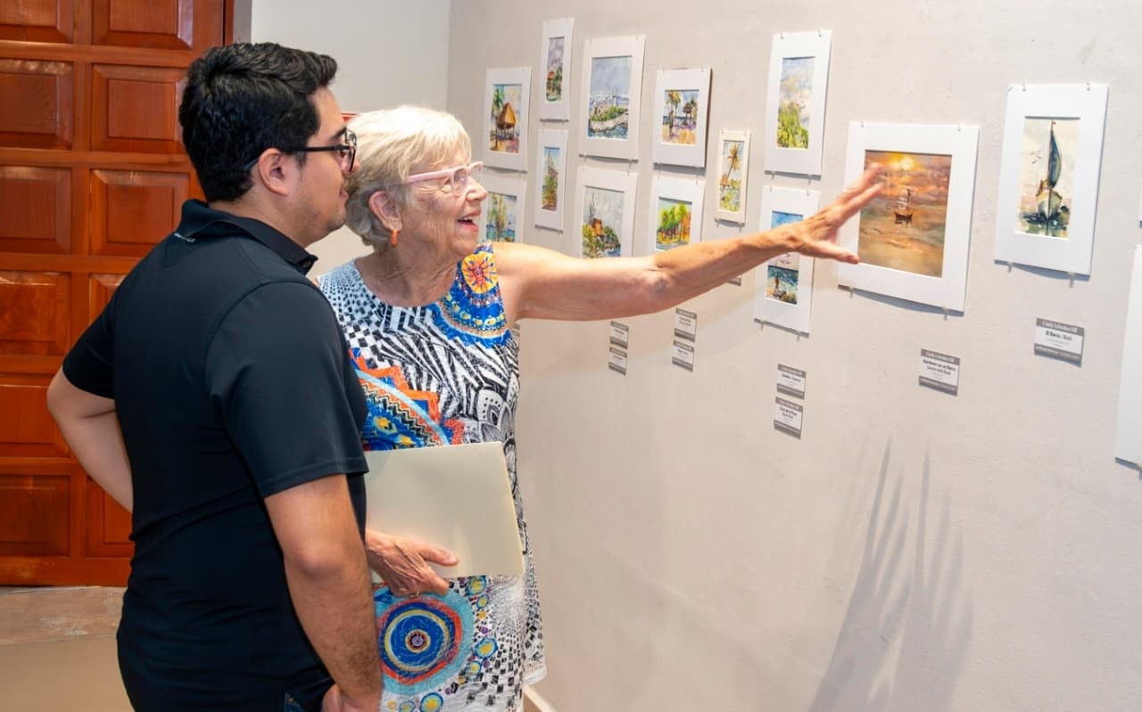 Cozumel, Quintana Roo, 14 de marzo de 2025.- La Fundación de Parques y Museos de Cozumel (FPMC) inauguró en el Museo de la Isla la exposición pictórica “Un Mundo Hermoso. Cercano y Lejano” de la artista Cindy Schenker Hill, integrada por 58 obras realizadas en acuarela y bolígrafo que invitan al público a descubrir la belleza de lo cotidiano y de los paisajes que inspiran su mirada artística.