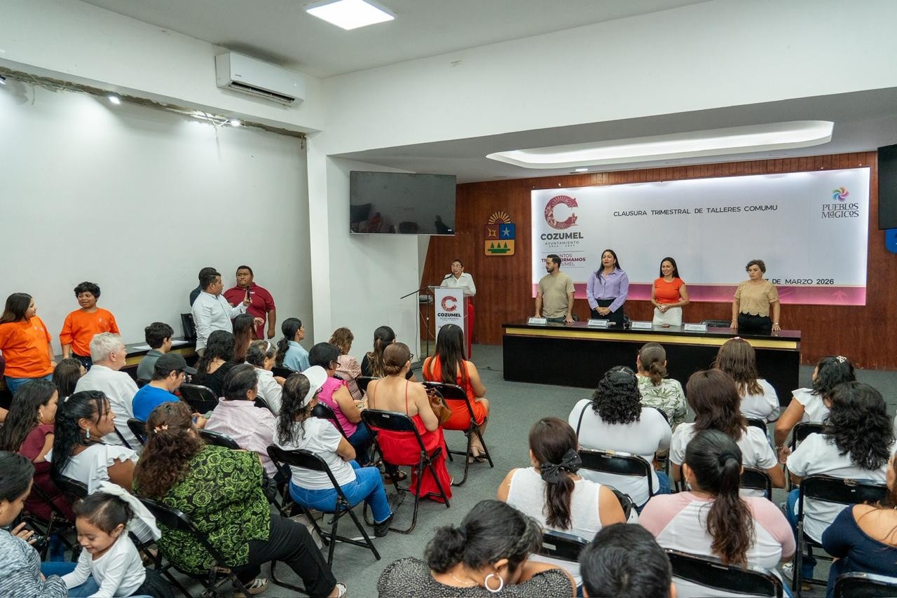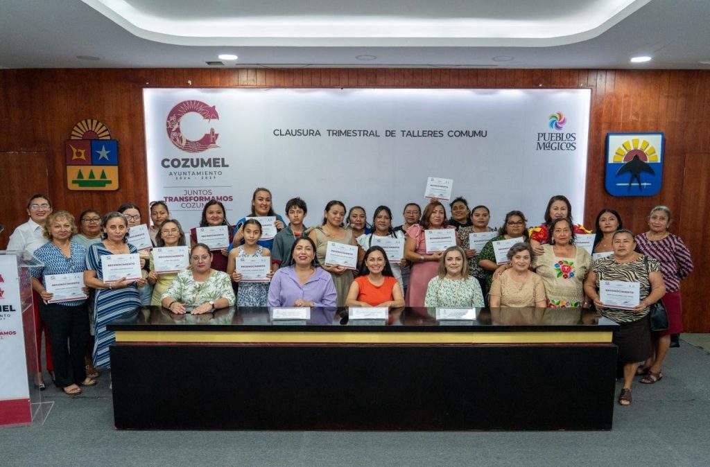 Cozumel, Quintana Roo, 28 de marzo de 2026.- En el marco de las acciones impulsadas por el presidente municipal, José Luis Chacón Méndez, a través del Comité Municipal de la Mujer (COMUMU), se llevó a cabo la clausura de los talleres dirigidos a mujeres de la isla, reafirmando el compromiso de esta administración con el desarrollo integral, la capacitación y el empoderamiento femenino. Durante este periodo, correspondiente al trimestre de enero a marzo, 116 alumnas y alumnos concluyeron su formación y recibieron sus constancias.